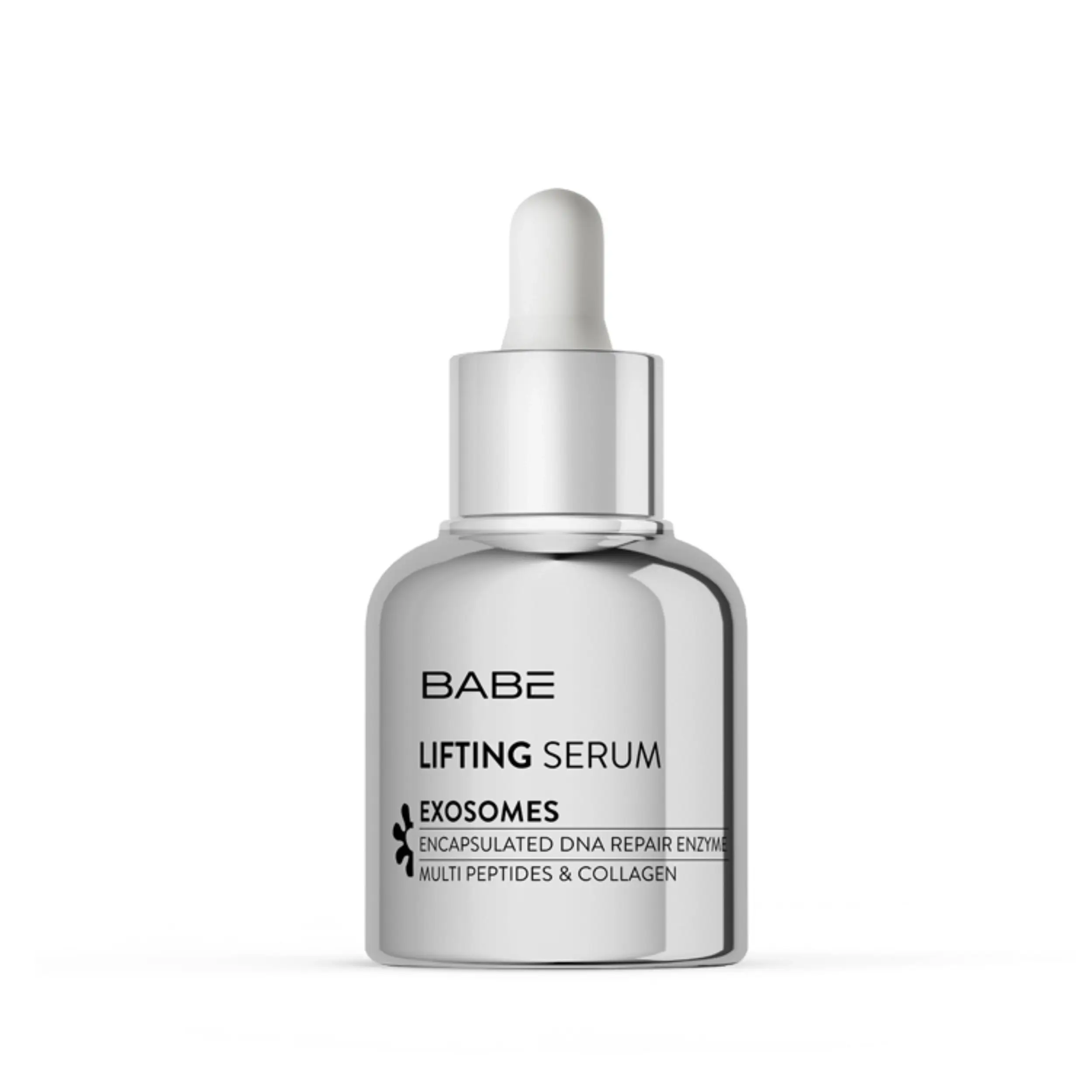 Babé Lifting Serum is an advanced dermocosmetic treatment powered by cutting-edge biotechnology. Formulated with Exosomes, DNA-repair Enzymes, Multi-Peptides, and Collagen Amino Acids, this high-precision serum stimulates deep cellular regeneration to fight all visible signs of aging. Its lightweight, fast-absorbing texture delivers instant and long-lasting results, restoring firmness, density, and elasticity while redefining the facial contour. Clinically proven to reduce wrinkles, improve skin tone, and provide a global lifting effect in just 8 weeks.