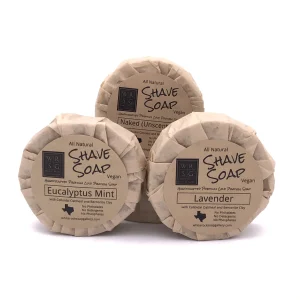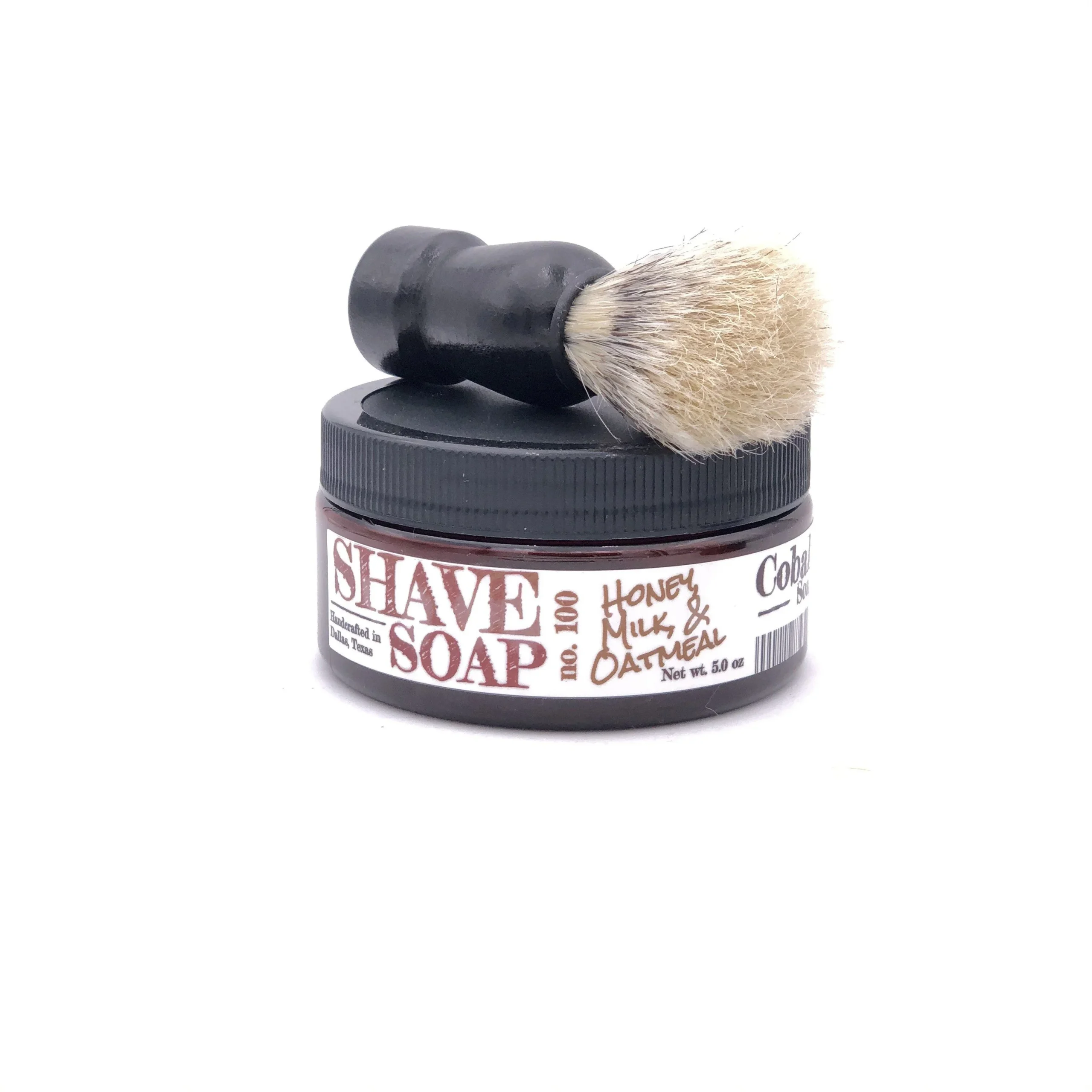 no. 103: Shave Soap with a blend of Honey, Milk, and Oatmeal with the added benefits of colloidal oatmeal and Bentonite Clay for a nice smooth glide of the blade. Use a shaving brush to make a rich moisturizing later. Comes in a plastic container with a black lid.
