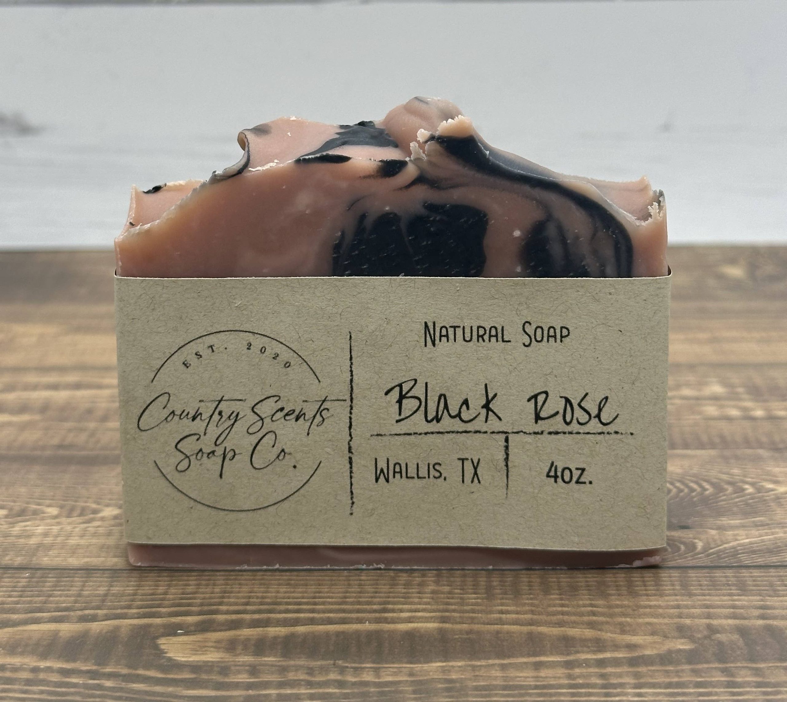Black Rose Soap smells like a bouquet of black roses with patchouli, orange zest, orchid and a hint of cinnamon.