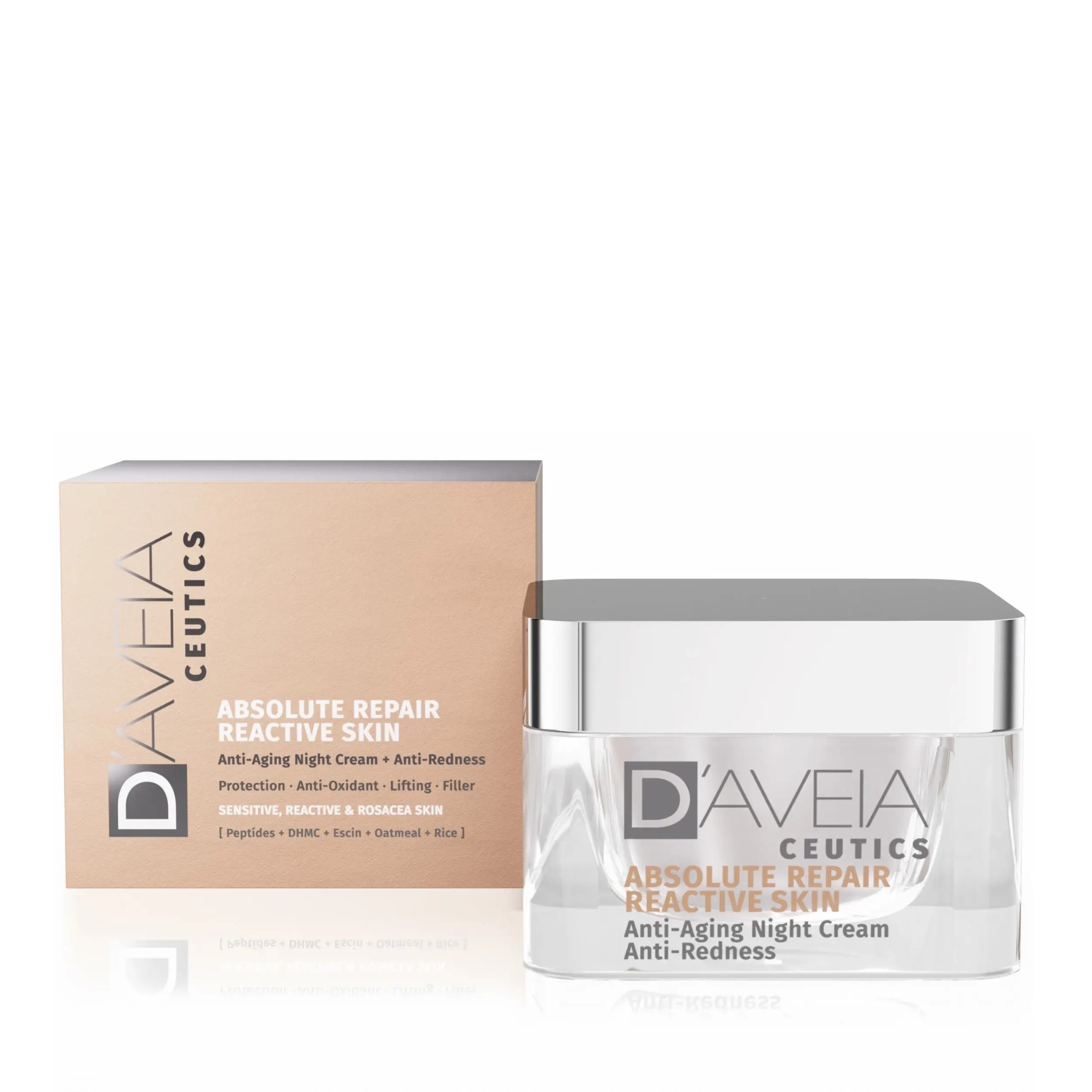 D´Aveia Ceutics Absolute Repair Reactive Skin Night Cream anti-aging and anti-redness cream specially formulated for sensitive, reactive skin or skin with rosacea. Designed to soothe irritation, reduce redness, and visibly diminish signs of aging, this cream restores comfort and balance overnight.