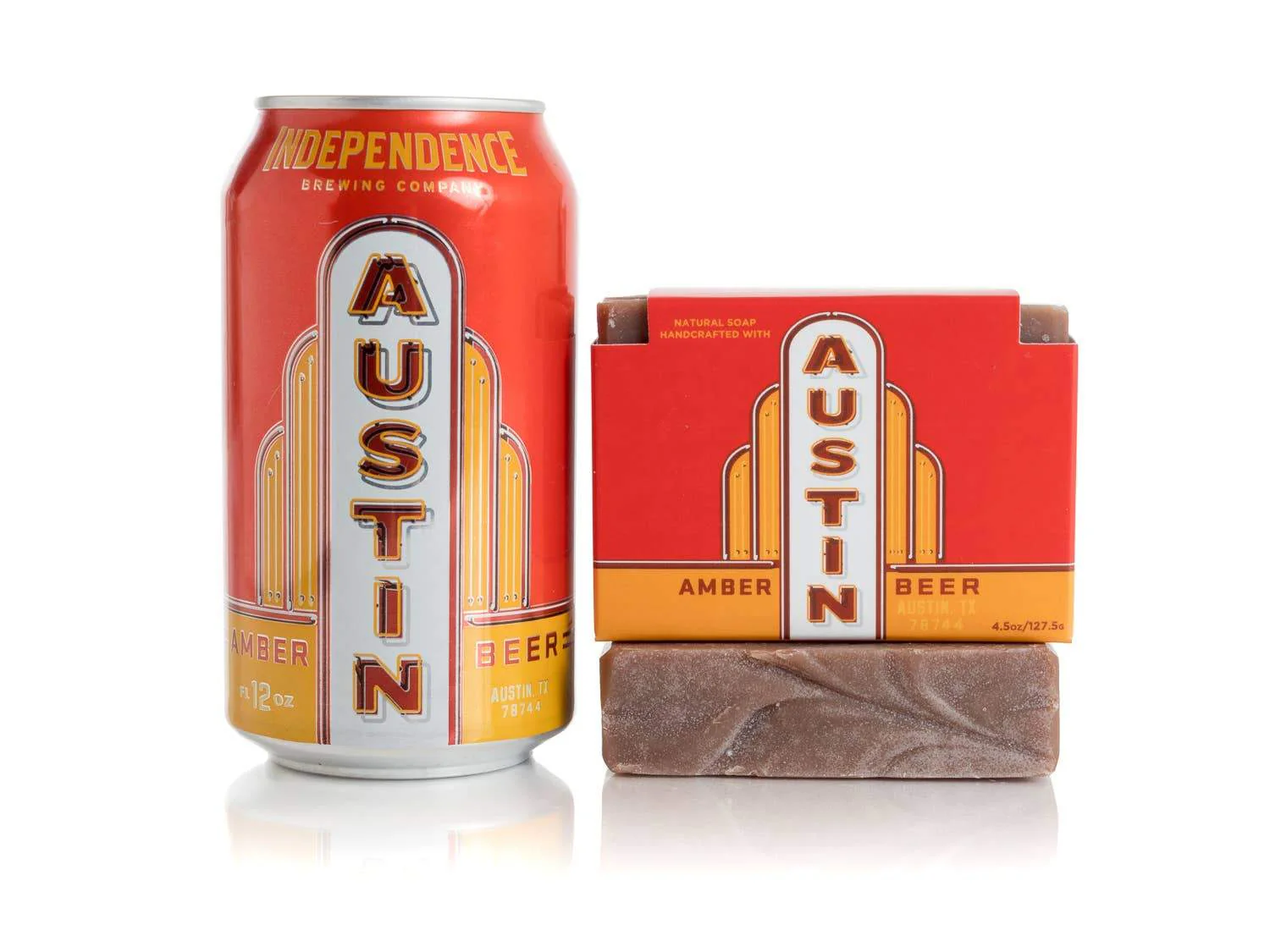 Austin amber is a true Austin original with its blend of toasted malt flavor balanced. It’s smooth and laid-back. This soap is crafted with this delicious dark brew in place of water and scented with toasty notes of oak and vanilla.