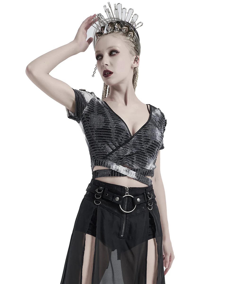 New Womens Apocalyptic gothic cropped T-Shirt top by Punk Rave.