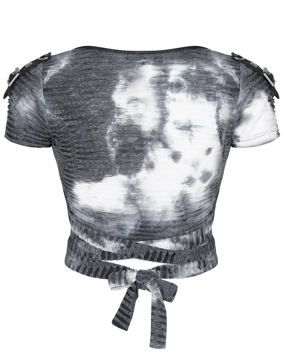 Cut from soft & stretchy custom broken-knit polyester with grey tie-dye effect