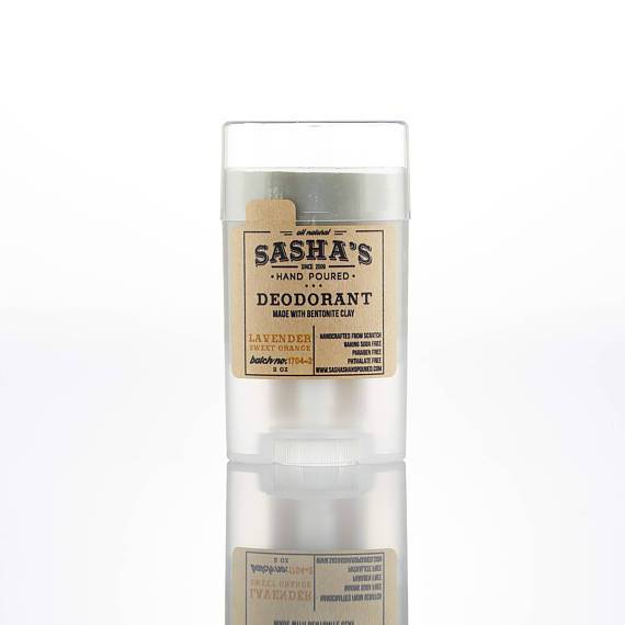Made with arrowroot starch instead of cornstarch (so no GMOs) and bentonite clay instead of baking soda, along with pure natural local beeswax, and pure lavender essential oil, so it’s less irritating for sensitive underarms!