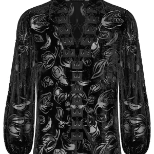 Punk Rave Mens Pirahna Gothic Velvet Flocking Pirate Shirt