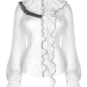 Punk Rave Womens Dark Lolita Asymmetric Jacquard & Chiffon Blouse Top